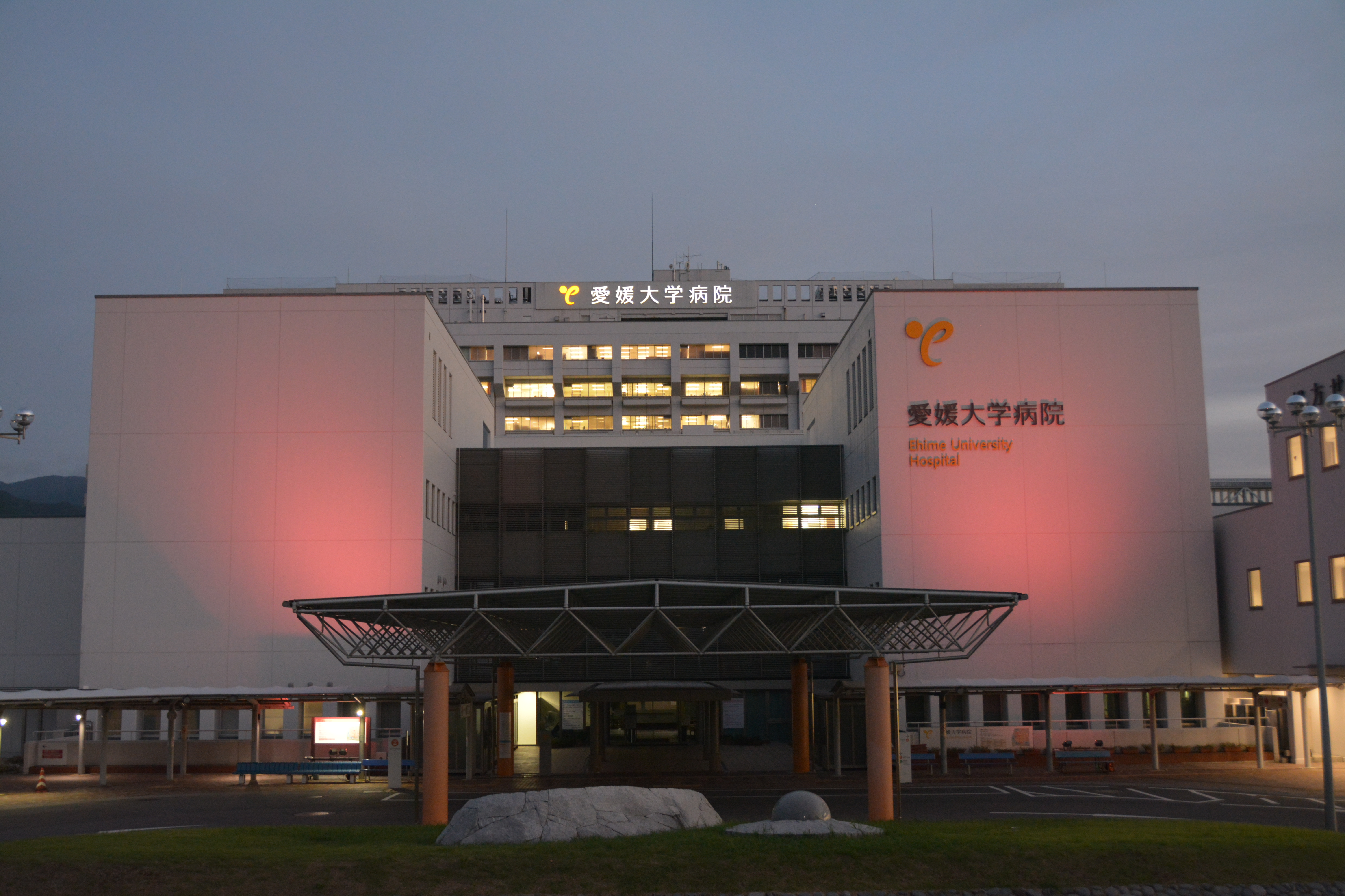 また、18時から21時の間、附属病院の正面を世界患者安全の日のイメージカラーであるオレンジ色にライトアップしました。