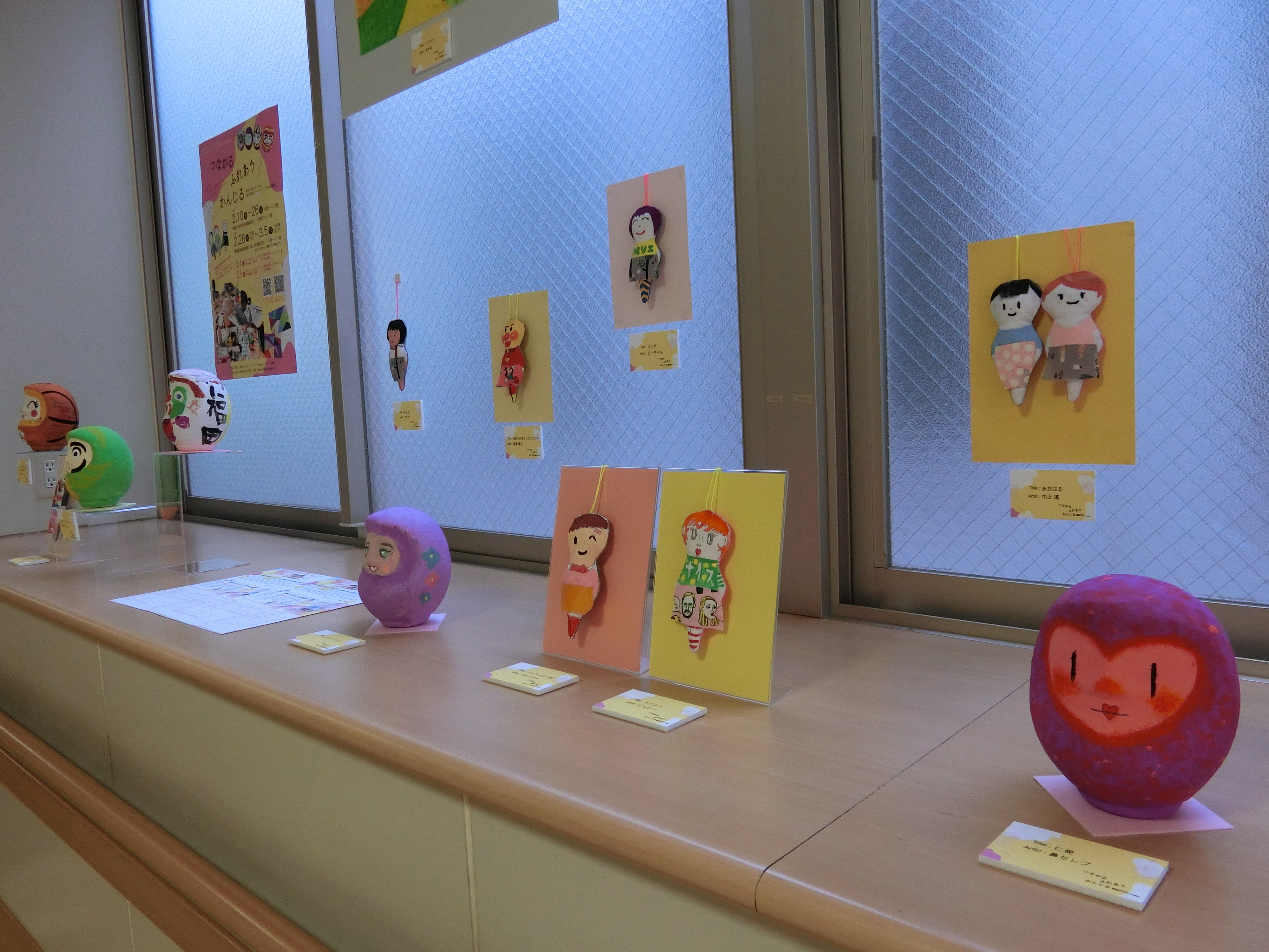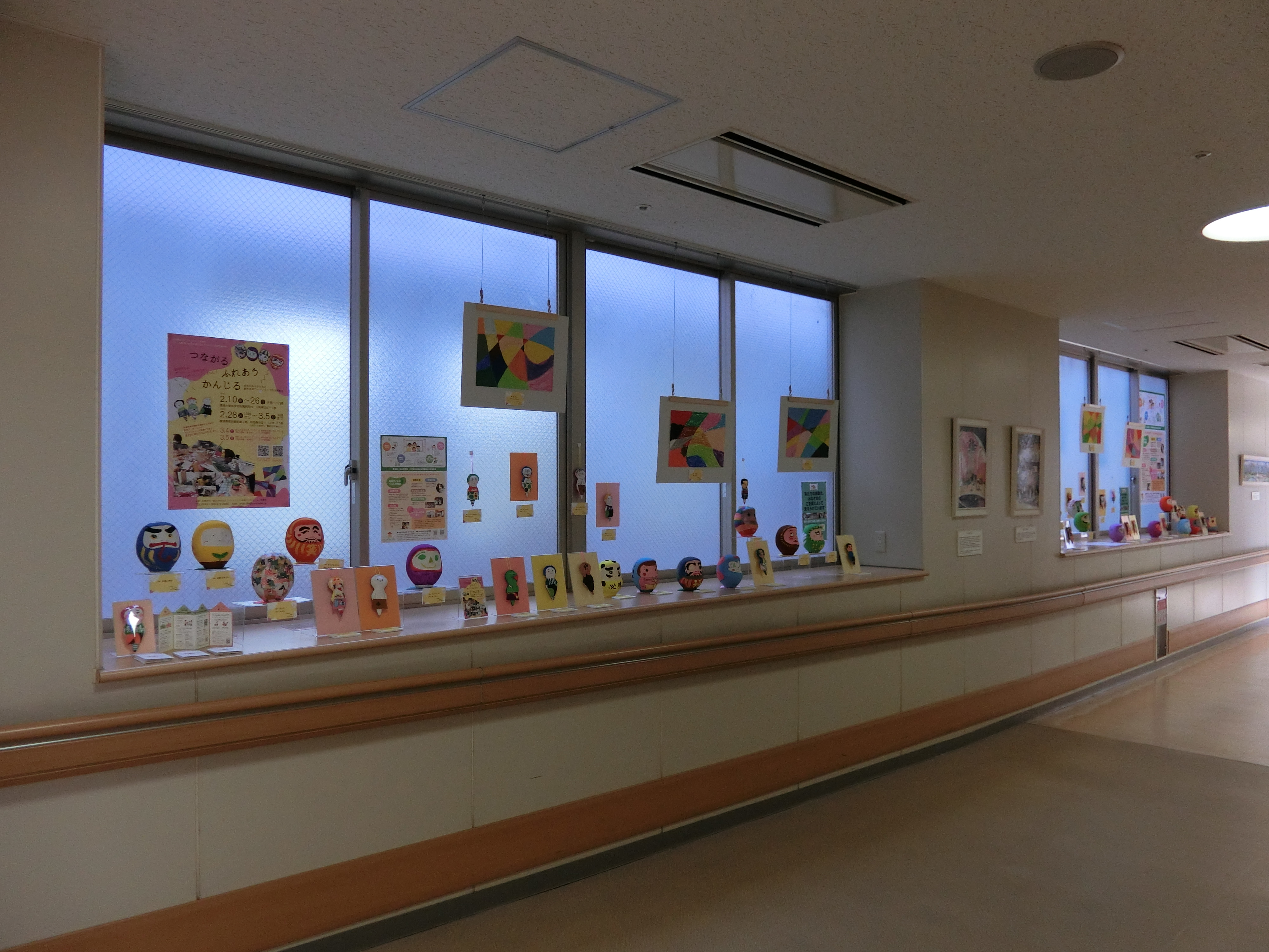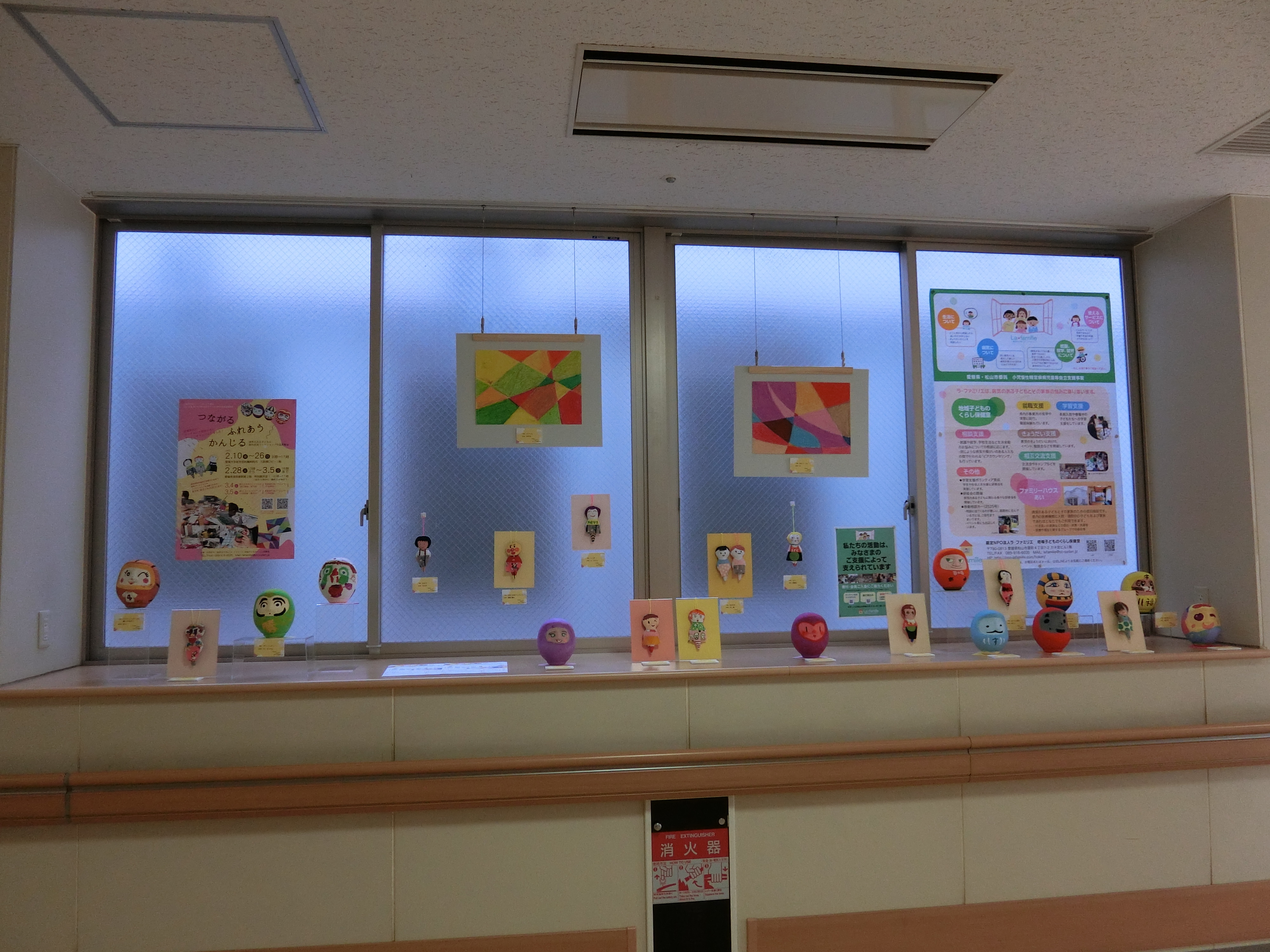 2号館通路にて”病気のある子どもの創作「こどもアーティスト」展示”を実施中です